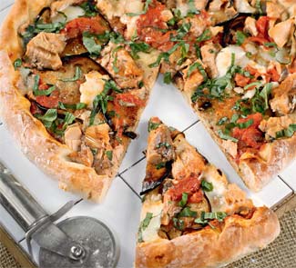 Пицца с баклажанами и лососем